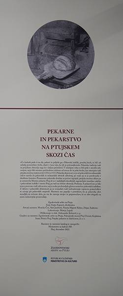V sklopu dogodkov »Ta veseli dan kulture« smo v Zgodovinskem arhivu na Ptuju dne 1.12.2022 otvorili razstavo z naslovom »Pekarne in pekarstvo na ptujskem skozi čas«, ki nas popelje preko ohranjenih arhivskih dokumentov skozi pekarsko tradicijo na ptujskem, ki se je razvijala od pekovskih in mlinarskih cehov do pekovskih in mlinarskih združenj, po vojni pa se je preobrazila v družbeno lastnino. Razstavo in izdajo kataloga je finančno omogočilo Ministrstvo za kulturo RS. Veseli smo bili velikega števila obiskovalcev, še posebej pa so nas počastili z obiskom člani družine Korošec, ki ima več kot 200 letno tradicijo mlinarstva v Zabovcih. Kulturni program so obogatile učenke GŠ Karol Pahor Ptuj, s pekovskimi dobrotami pa so nas razvajale PPS- Pekarne Ptuj, ki letos praznujejo 75 let. Obisk razstave je brezplačen, ogled vsak delovnik med 8.00 in 15.00 uro, do maja 2023. Vljudno vabljeni!