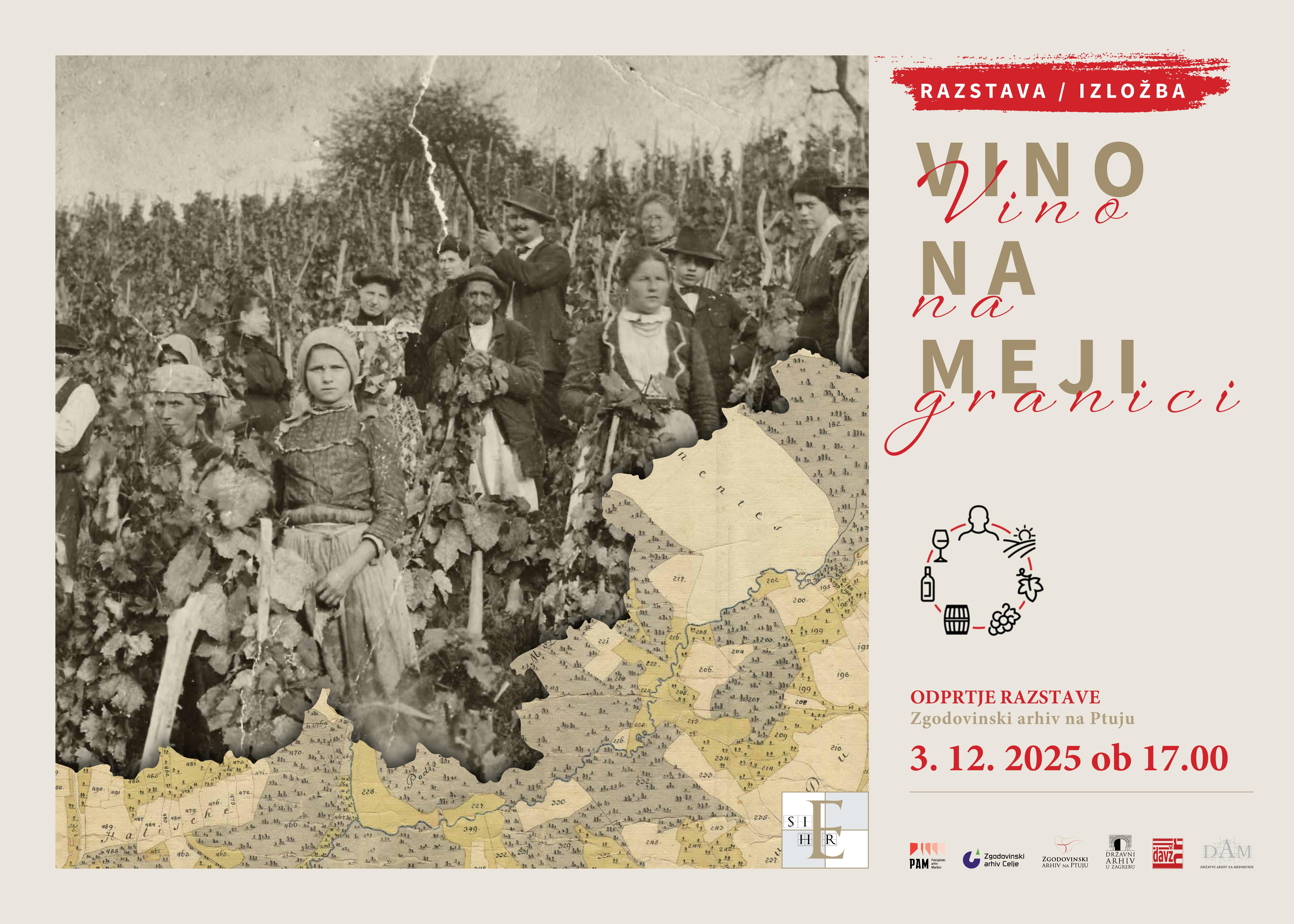 V Zgodovinskem arhivu na Ptuju bomo Ta veseli dan kulture praznovali z otvoritvijo razstave. Slovesno odprtje razstave Vino na meji / Vino na granici, bo v sredo, 3. decembra 2025, ob 17. uri v prostorih Zgodovinskega arhiva na Ptuju, Vičava 5, Ptuj.